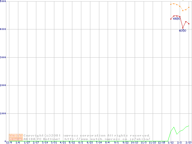 メモリ主要製品(最安値5千円未満)の最安値推移