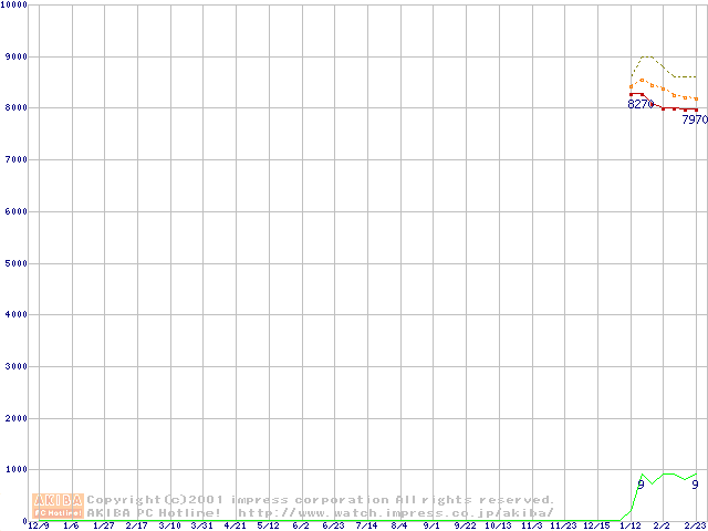 Socket 370 (PGA,FSB 100MHz,L2 64KB)の最安値推移