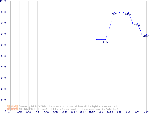 | [↑前グラフ]: | MHNシリーズ (9.5mm,4200rpm,UltraATA/100,2MB)の最安値推移 |