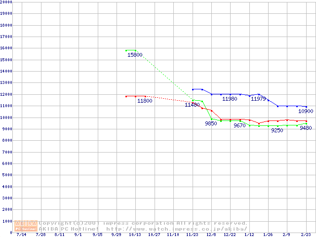 | [↓次グラフ]: | Travelstar 20GN (9.5mm,4200rpm,UltraATA/66,2MB/512KB/256KB)の最安値推移 |