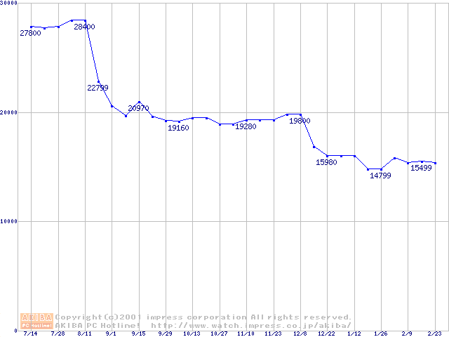 | [↑前グラフ]: | Socket A (Palomino,OPGA,FSB 266MHz,L2 256KB)の最安値推移 |