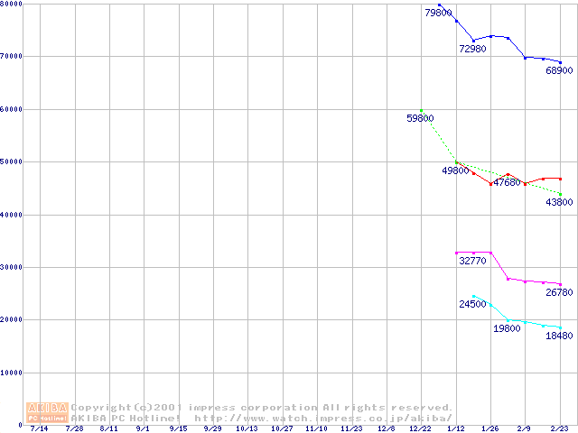 | [↓次グラフ]: | Socket 478 (micro-PGA,L2 256KB,Willamette)の最安値推移 |