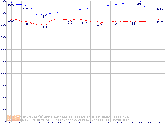 | [↑前グラフ]: | MPG3xxxAH-E (7200rpm,UltraATA/100)の最安値推移 |