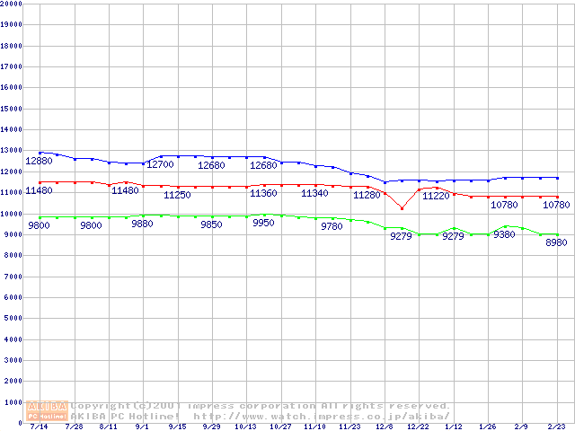 | [↓次グラフ]: | WD Caviar (5400rpm,UltraATA/100)の最安値推移 |