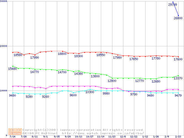 | [↓次グラフ]: | WD Protege (5400rpm,UltraATA/100)の最安値推移 |