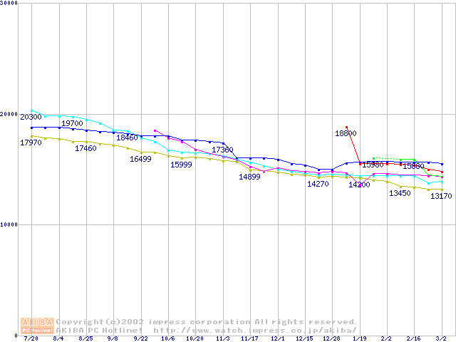 | [↓次グラフ]: | HDD 80GB~100GB未満(7200rpmクラス)の最安値推移 |