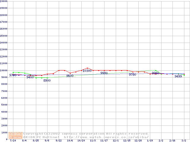 | [↑前グラフ]: | HDD 20GB~30GB未満(5400rpmクラス)の最安値推移 |