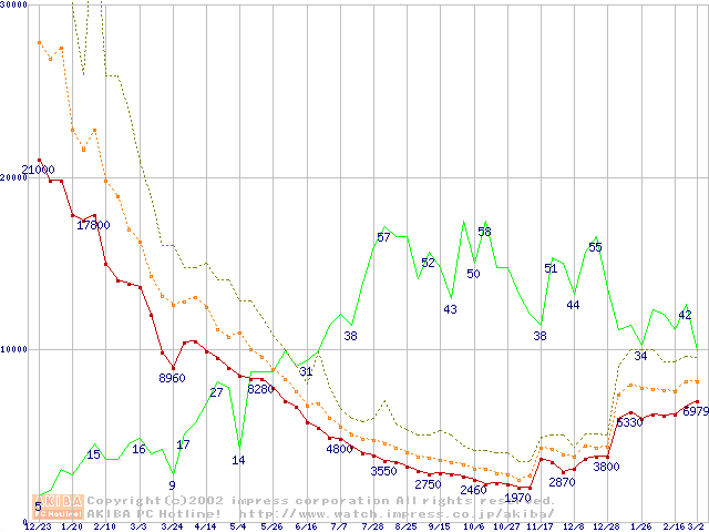 PC133 SDRAM DIMM CasLatency=2の最安値推移