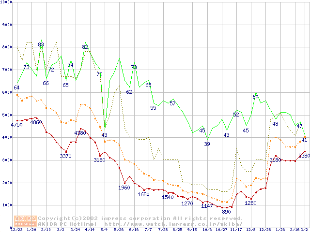 メモリ主要製品の最安値推移