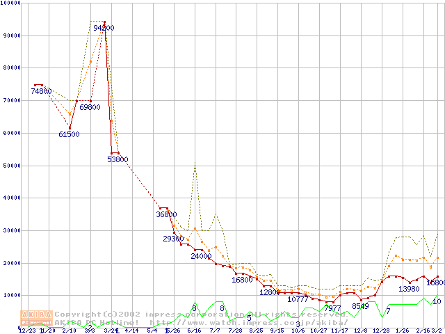 メモリ主要製品の最安値推移