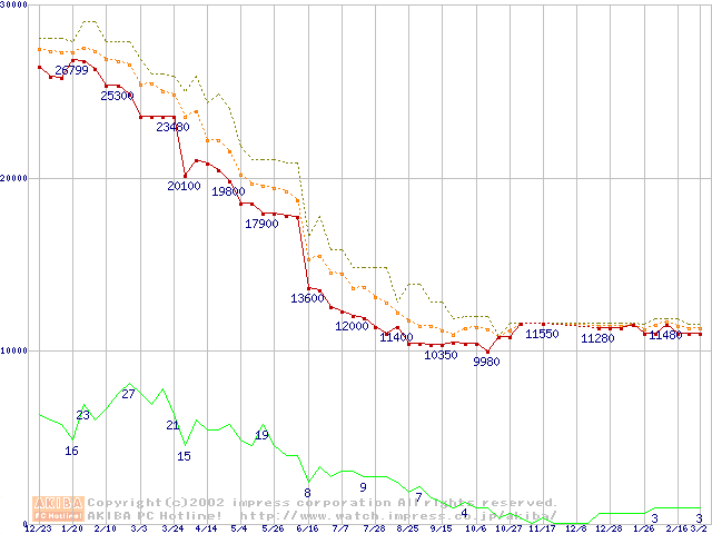 Socket A (Thunderbird,PGA,FSB 200MHz,L2 256KB)の最安値推移