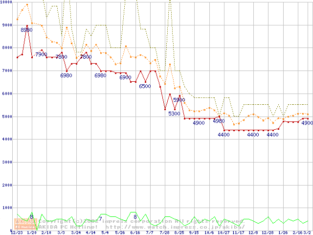 Socket 370・FSB 66MHzの最安値推移