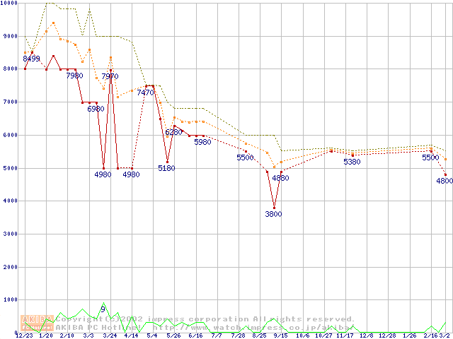 Socket 370 (FC-PGA,FSB 66MHz,L2 128KB)の最安値推移
