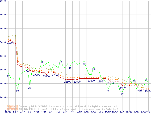 Socket 370・FSB 133MHzの最安値推移