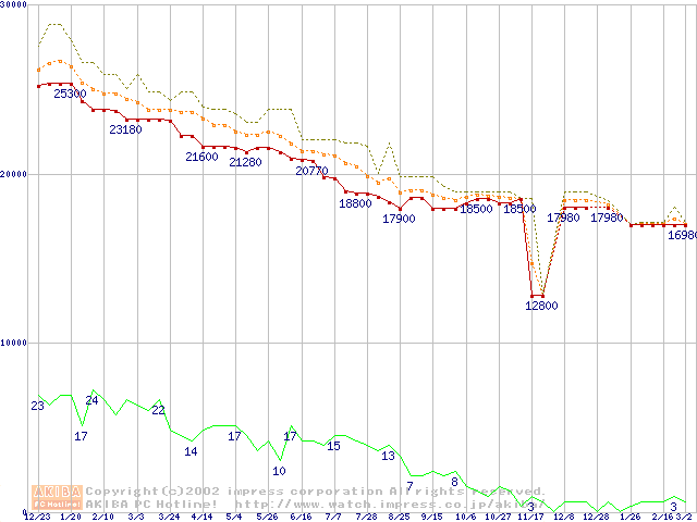 Pentium III 866MHz SECC2 リテールパッケージの価格推移