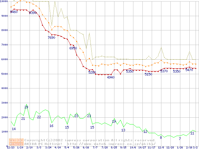 Socket A (Spitfire,PGA,FSB 200MHz,L2 64KB)の最安値推移