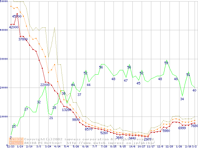 メモリ主要製品(最安値5千円~1万円未満)の最安値推移