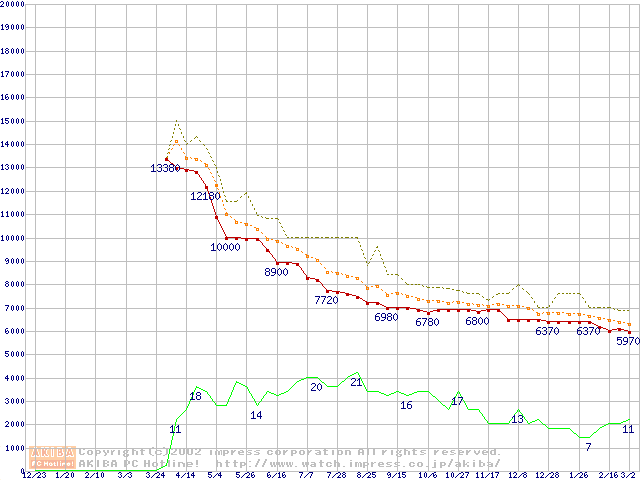 Socket A (Spitfire,PGA,FSB 200MHz,L2 64KB)の最安値推移