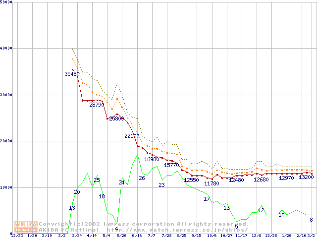 Athlon 1.33GHz(FSB266) (Thunderbird) バルクの価格推移