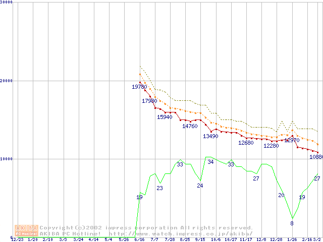 U6 (5400rpm,UltraATA/100 2MB 40GB/Platter)の最安値推移