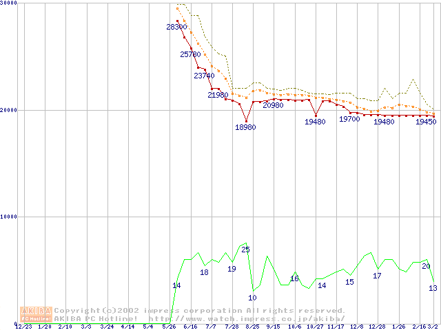 WD Caviar (7200rpm,UltraATA/100,2MB)の最安値推移
