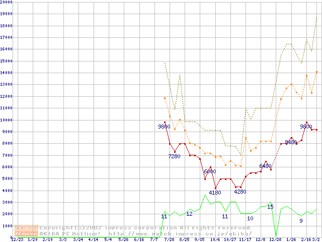 PC133 SDRAM DIMM CasLatency=3 ECC対応 Registeredタイプの最安値推移
