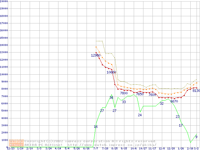 Celeron 900MHz FC-PGA リテールパッケージの価格推移