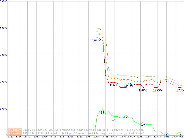 Pentium 4 1.60GHz(423pin)リテールパッケージ(RIMMなし)の価格推移