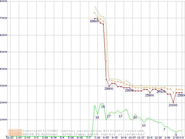 Pentium 4 1.80GHz(423pin)リテールパッケージ(RIMMなし)の価格推移