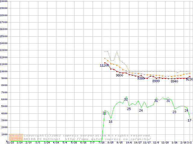 HDD 20GB~30GB未満(7200rpmクラス)の最安値推移