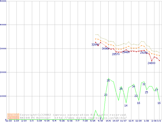 Socket 478 (micro-PGA,L2 256KB,Willamette)の最安値推移