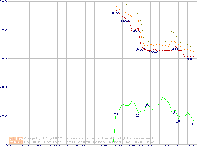 Socket 478 (micro-PGA,L2 256KB,Willamette)の最安値推移