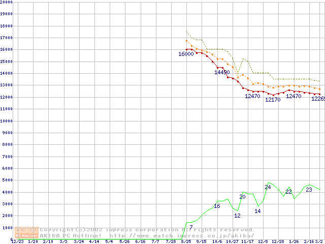 DiamondMax D540X (5400rpm,UltraATA/100,40GB/Platter)の最安値推移