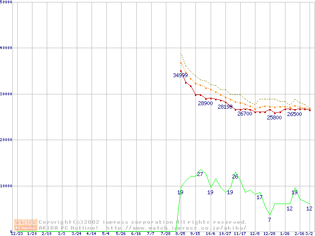 WD Caviar (7200rpm,UltraATA/100,2MB)の最安値推移