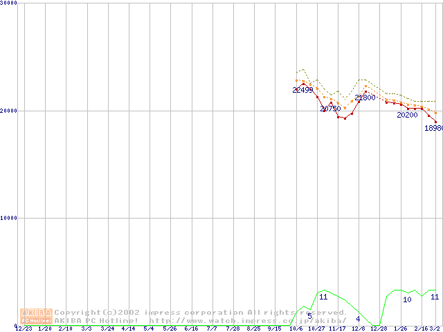HDD主要製品(最安値1万5千円~2万円未満)の最安値推移
