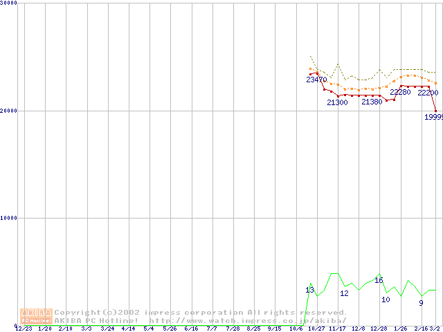Socket A (Palomino,OPGA,FSB 266MHz,L2 256KB)の最安値推移