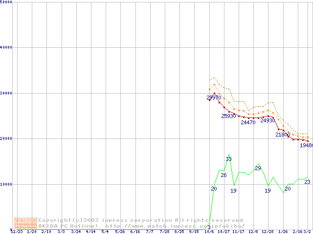 Socket A (Palomino,OPGA,FSB 266MHz,L2 256KB)の最安値推移