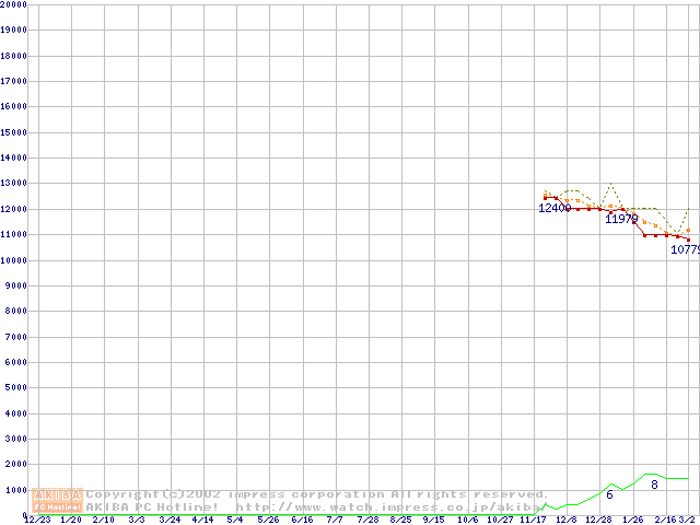 Travelstar 15GN (9.5mm,4200rpm,UltraATA/100,512KB,流体軸受)の最安値推移