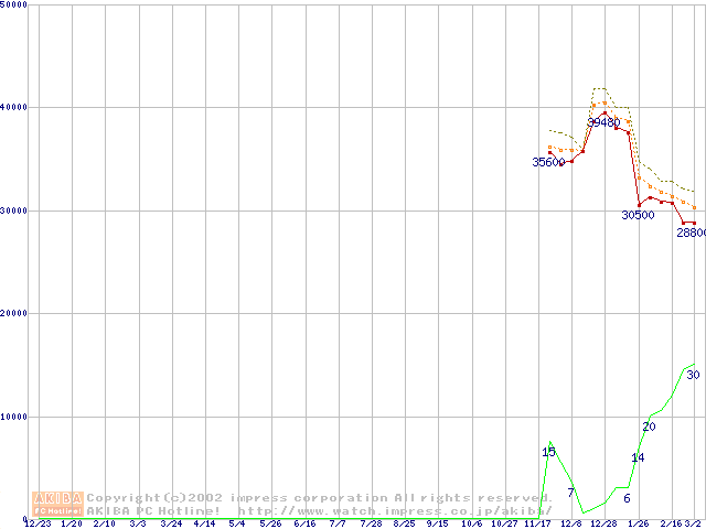 Socket A (Palomino,OPGA,FSB 266MHz,L2 256KB)の最安値推移