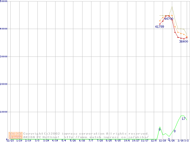 Socket A (Palomino,OPGA,FSB 266MHz,L2 256KB)の最安値推移