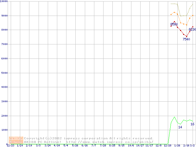 PC2100(DDR266) DDR SDRAM DIMM(CL 2.0)の最安値推移