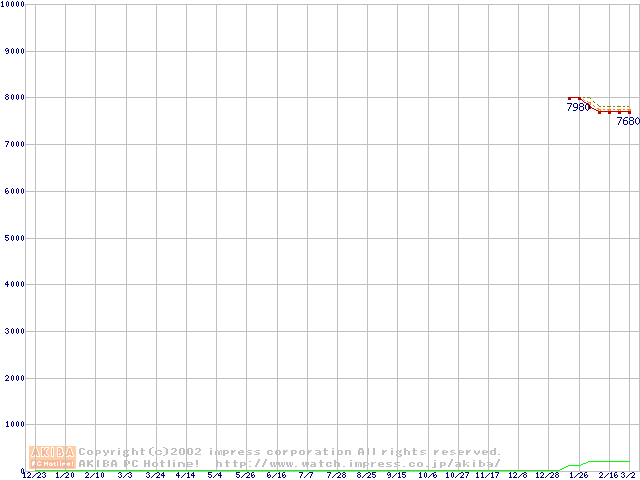 Socket 370 (PGA,FSB 100MHz,L2 64KB)の最安値推移