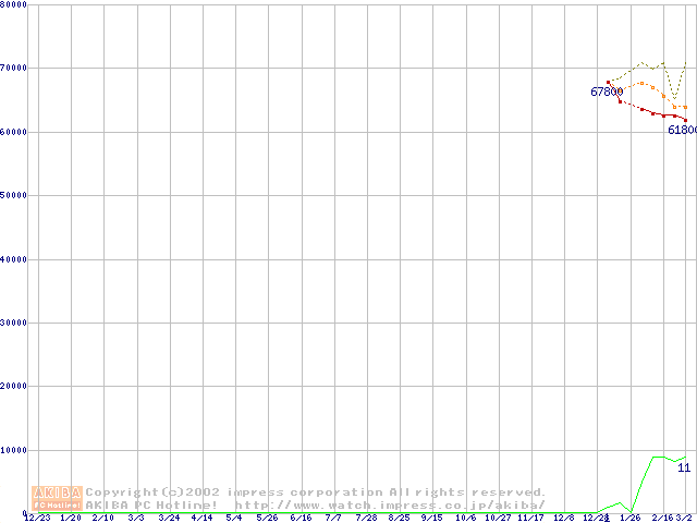Socket 603 (micro-PGA,L2 512KB,Hyper-Threading,Prestonia)の最安値推移