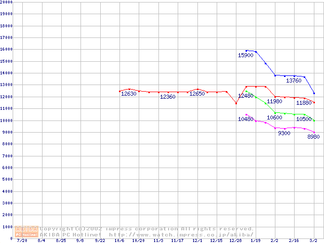 | [↑前グラフ]: | Slot 1 (SECC2,FSB 100MHz,L2 256KB)の最安値推移 |