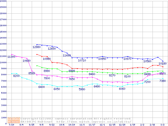 | [↓次グラフ]: | Socket 370 (FC-PGA,FSB 66MHz,L2 128KB)の最安値推移 |