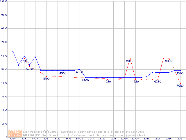 | [↓次グラフ]: | Socket A (Palomino,OPGA,FSB 266MHz,L2 256KB)の最安値推移 |