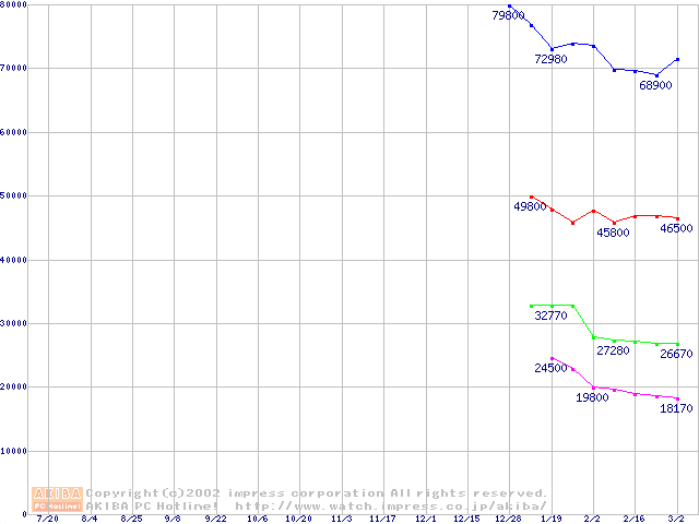 | [↑前グラフ]: | PC800 DRDRAM RIMM ECC対応の最安値推移 |