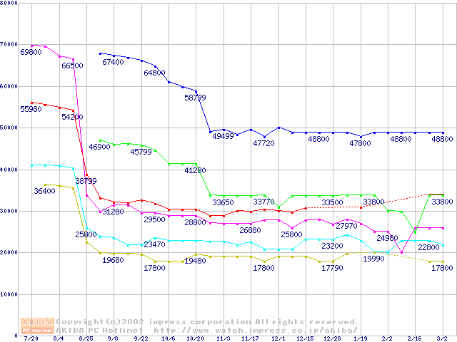 | [↓次グラフ]: | Socket 603 (micro-PGA,L2 512KB,Hyper-Threading,Prestonia)の最安値推移 |