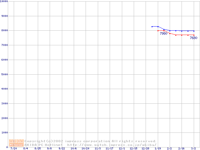 | [↓次グラフ]: | DiamondMax Plus D740X (7200rpm,UltraATA/133,40GB/Platter,流体軸受)の最安値推移 |