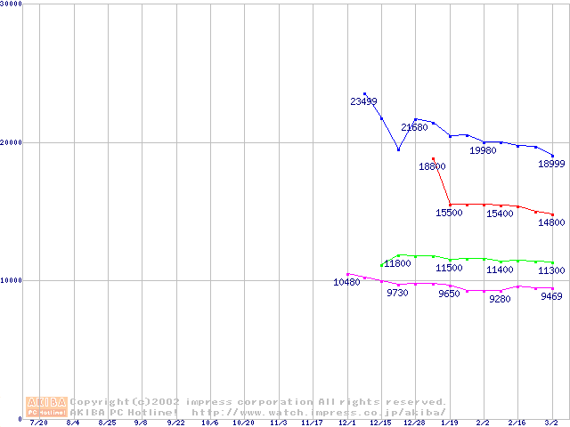 | [↑前グラフ]: | Socket 370 (PGA,FSB 100MHz,L2 64KB)の最安値推移 |
